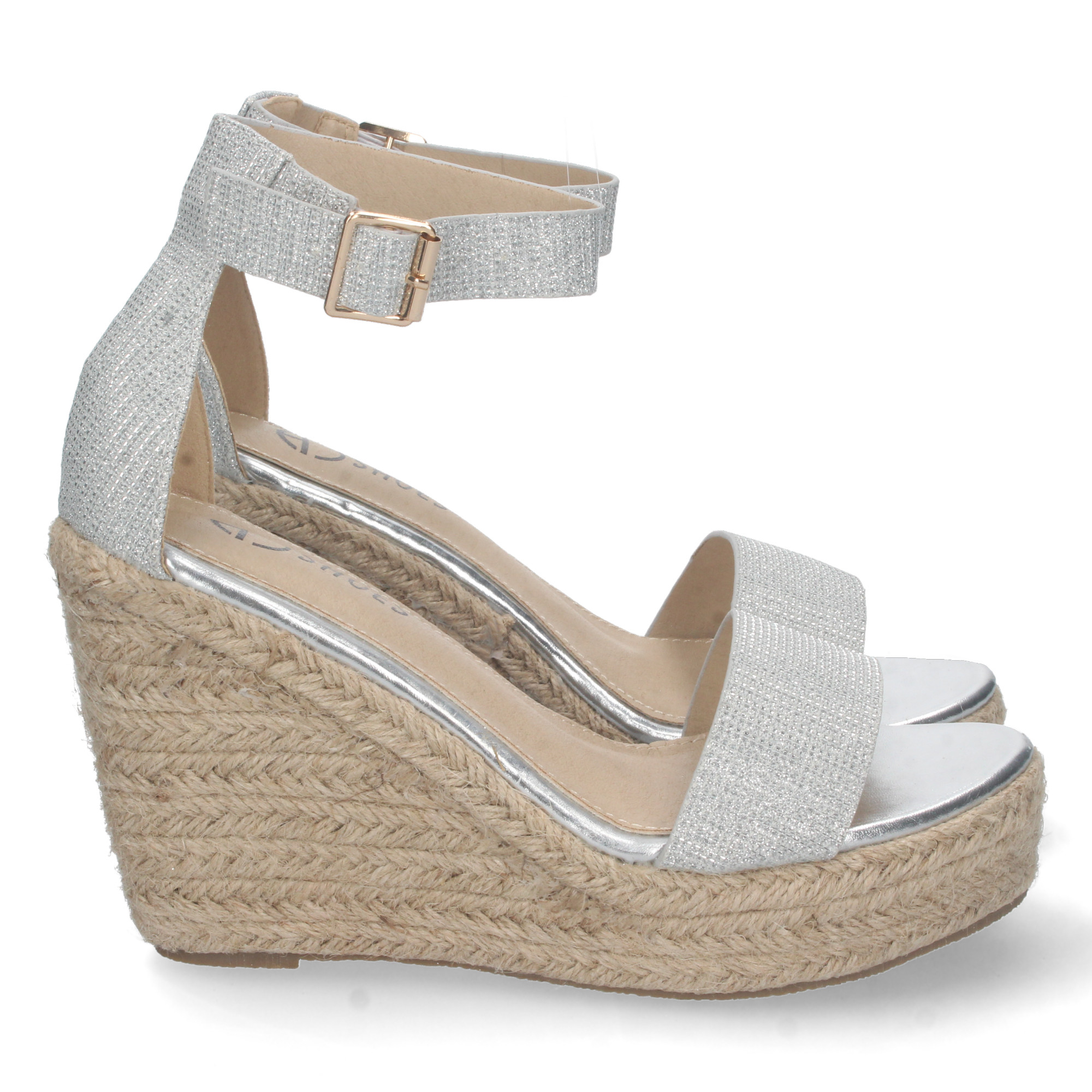 Shoes and Blues Sandale compensée avec jute et boucle FZ22-25 Argenté