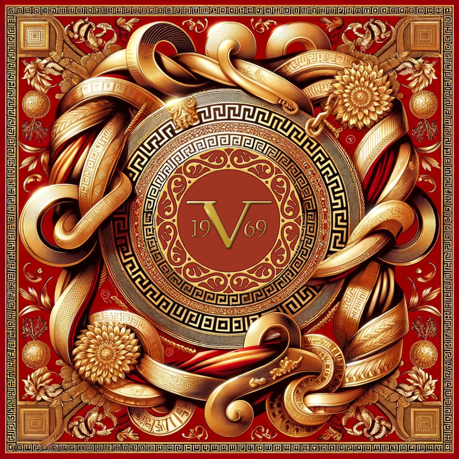 Description : Ce Carré de soie Shield Red affiche un design audacieux et majestueux avec un bouclier central emblématique de V1969 Italia, encadré par des cordes et des chaînes dorées sur un fond rouge profond. Confectionné en 100% soie, ce foulard est un hommage à la force et à l'élégance, caractéristiques de la marque. Mesurant 70x70 cm, il allie la puissance visuelle d'un emblème classique avec la finesse du textile, créant un accessoire à la fois intemporel et moderne.
