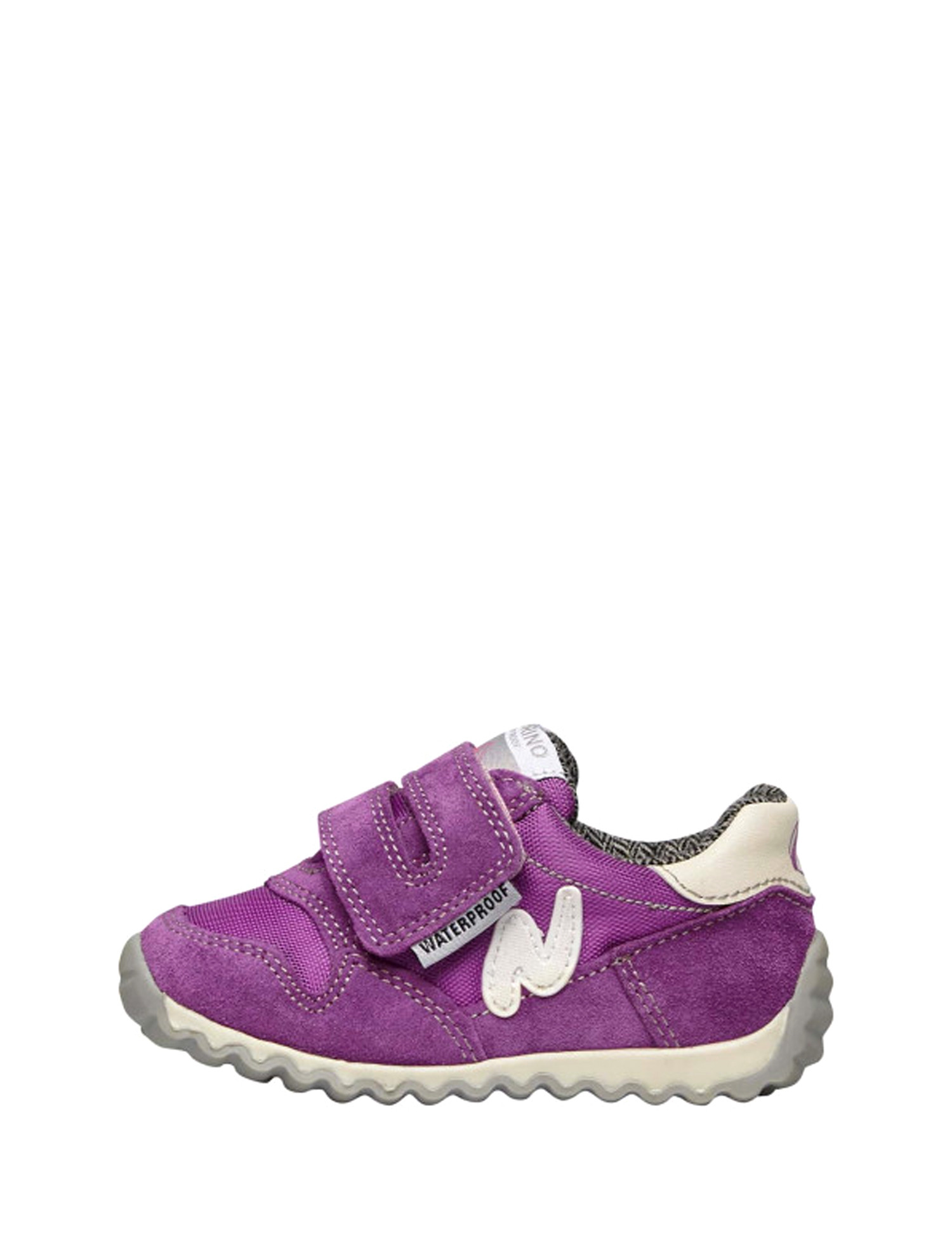 La fermeture est rapide grâce à une double bande velcro, tandis que le talon structuré et la semelle intérieure en cuir assurent maintien et bien-être au petit pied.