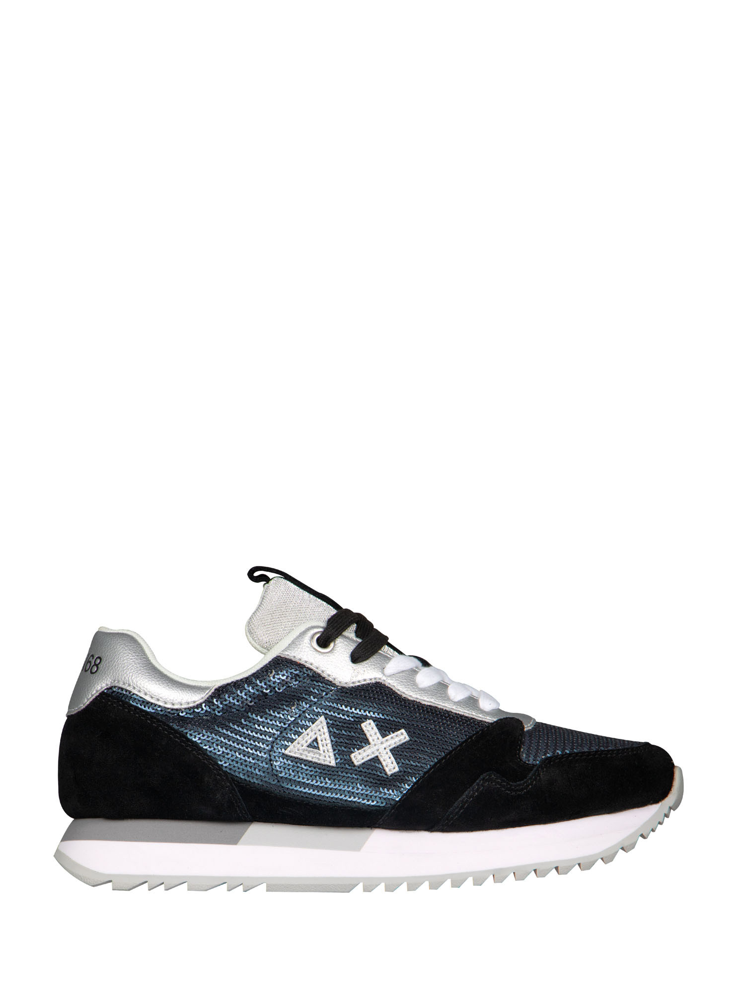 Applications: baskets en cuir avec paillettes et empiècements en daim.