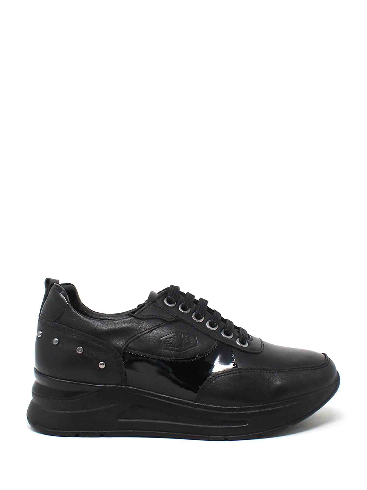 Description : baskets en cuir de couleur unie avec détails effet vernis.