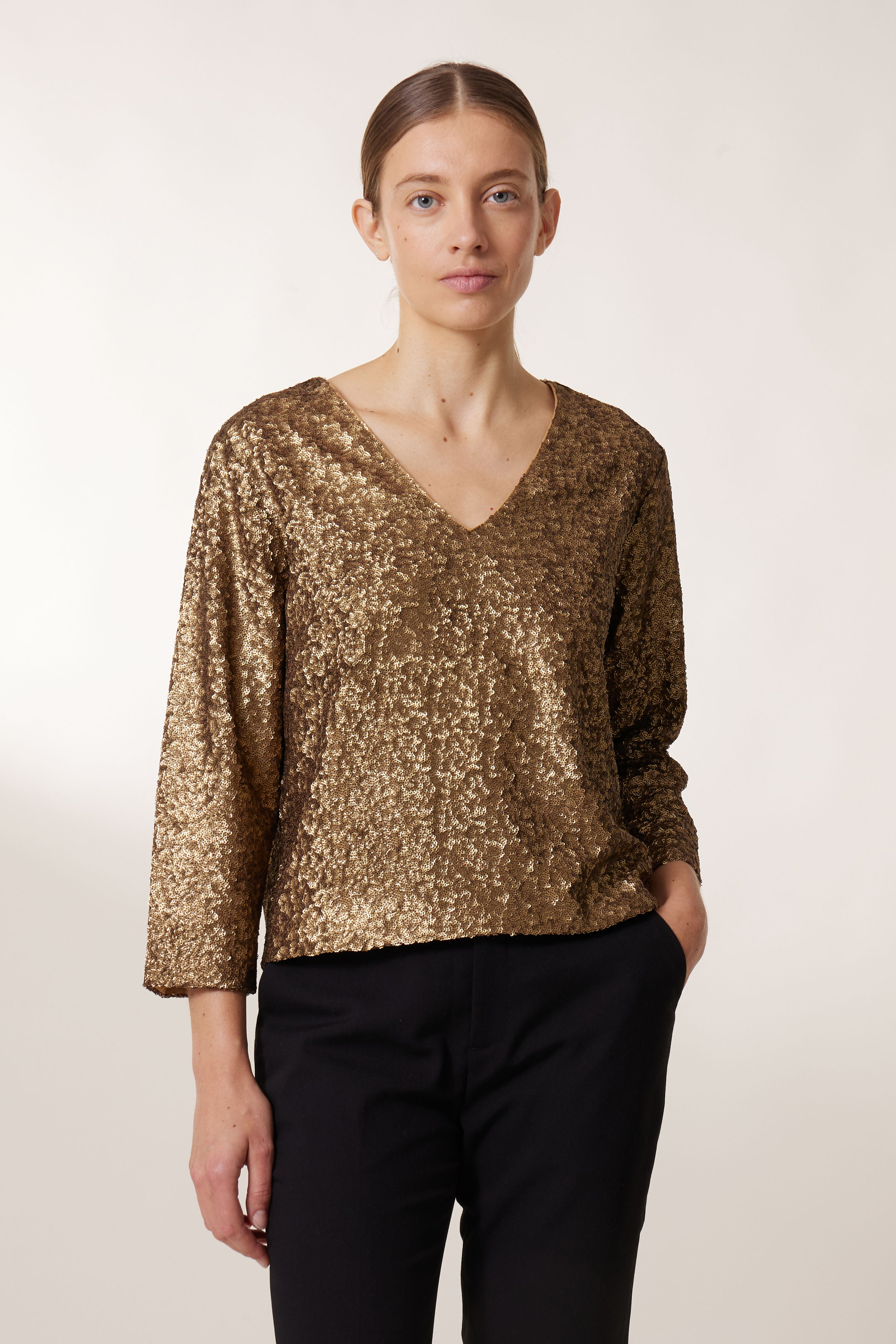 Avec ses sequins couleur champagne et ses manches 3/4, la blouse Cassy PLN est idéale pour une allure élégante. De jour comme de nuit, elle est parfaite pour rehausser les tenues de la femme Leon & Harper !