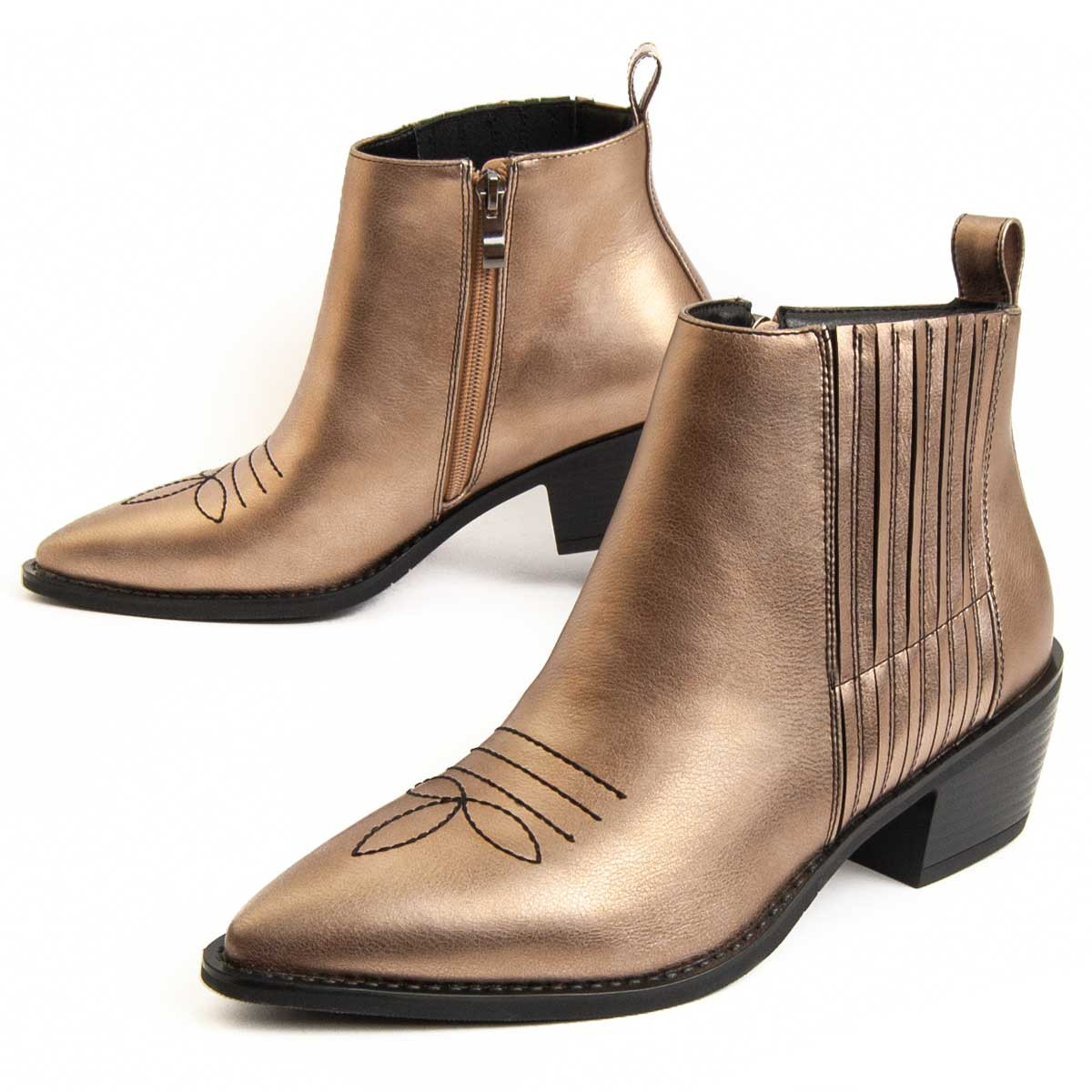 Bottine à talon pour femme. Ajustement confortable. Semelle intérieure rembourrée en cuir naturel. Fabriqué par d'autres marques pour notre marque. Mesures approximatives : talon 5 cm, hauteur de tige 10 cm et largeur de tige 10 cm.