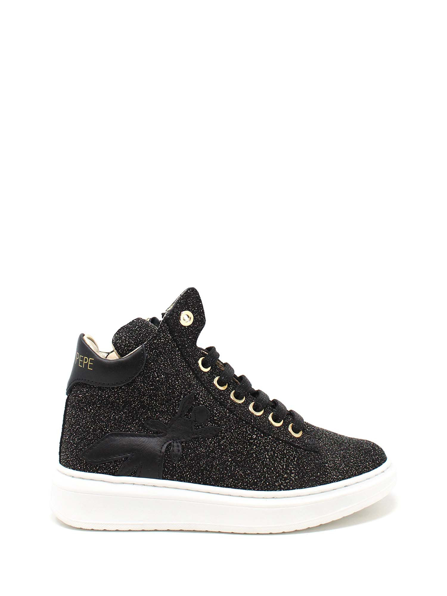 Description : sneaker en cuir avec des paillettes partout.