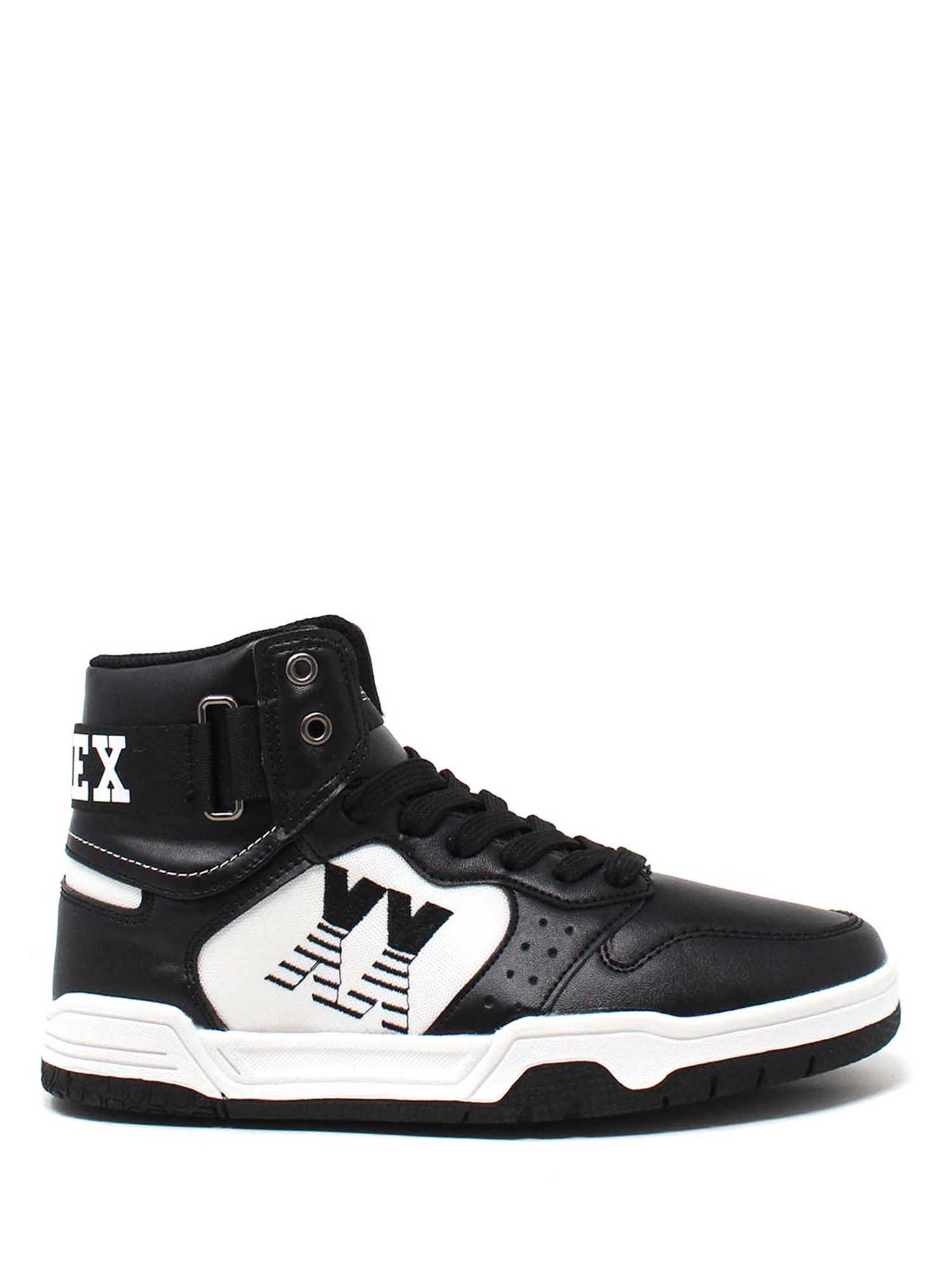Description : sneaker en éco-cuir avec empiècements en tissu.