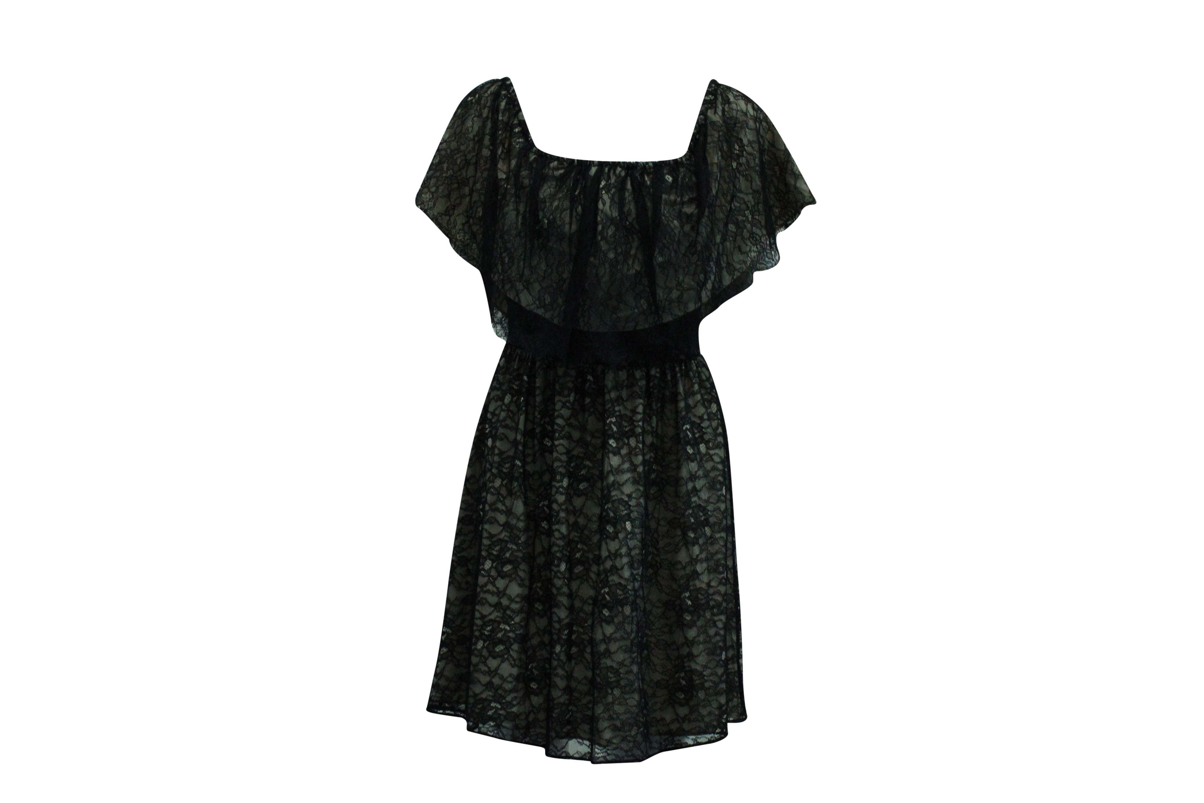 Alice + Olivia Robe courte en dentelle à épaules dénudées en nylon noir