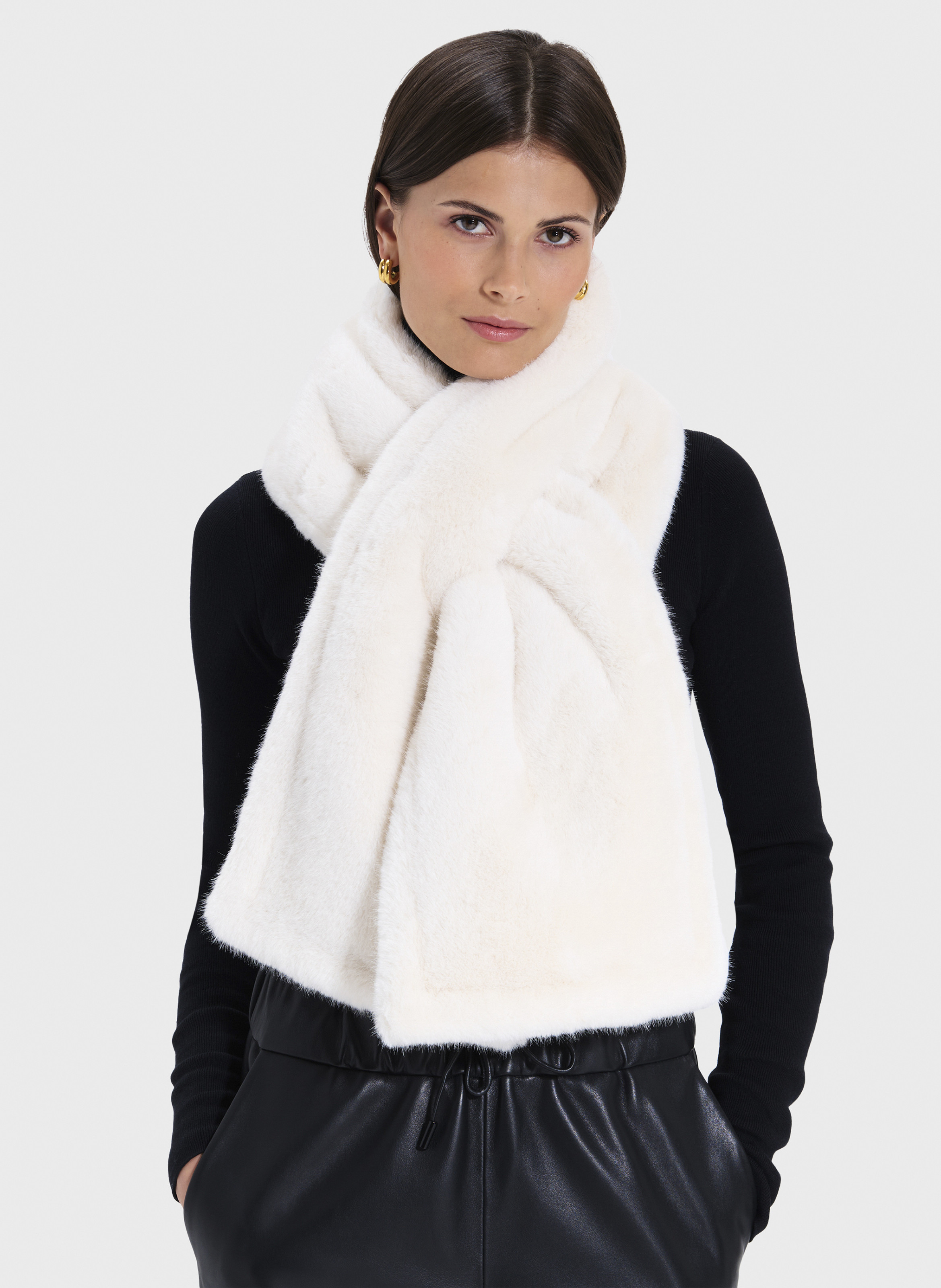 Découvrez l'écharpe à passant EVA, réalisée dans une matière douce et de qualité. Dans un élégant coloris écru, elle ajoute une touche de douceur et de raffinement à vos tenues d'hiver. Écharpe à passant Matière Fausse fourrure Coloris écru