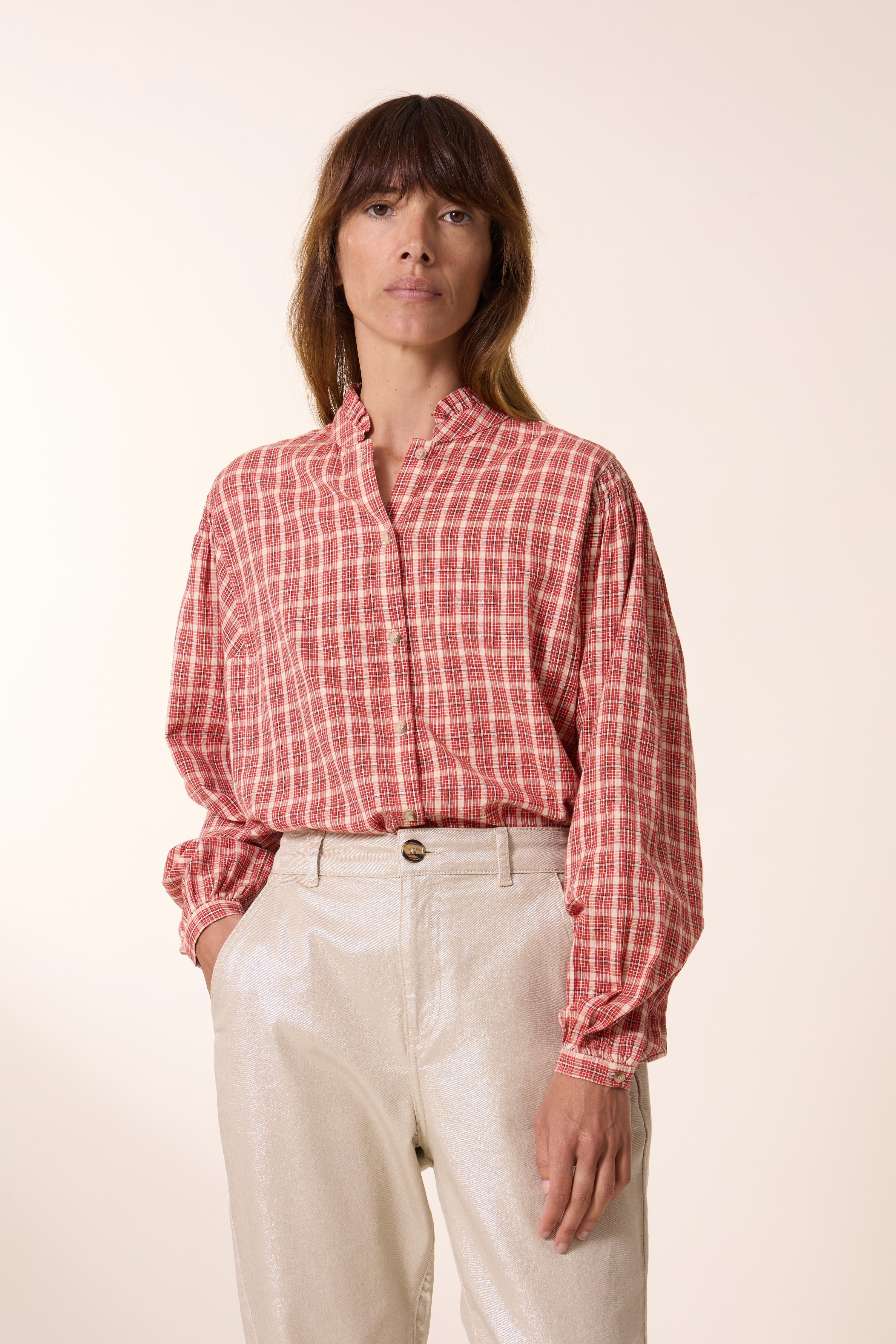 Avec son col montant et son imprimé à carreaux, la chemise Chiara Multi affirme une allure vintage et féminine pour un look décontracté et intemporel.