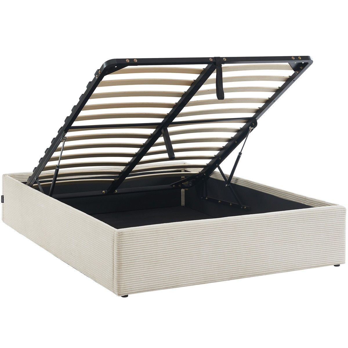 HANDY - Lit coffre 160x200 cm en velours côtelé beige avec sommier