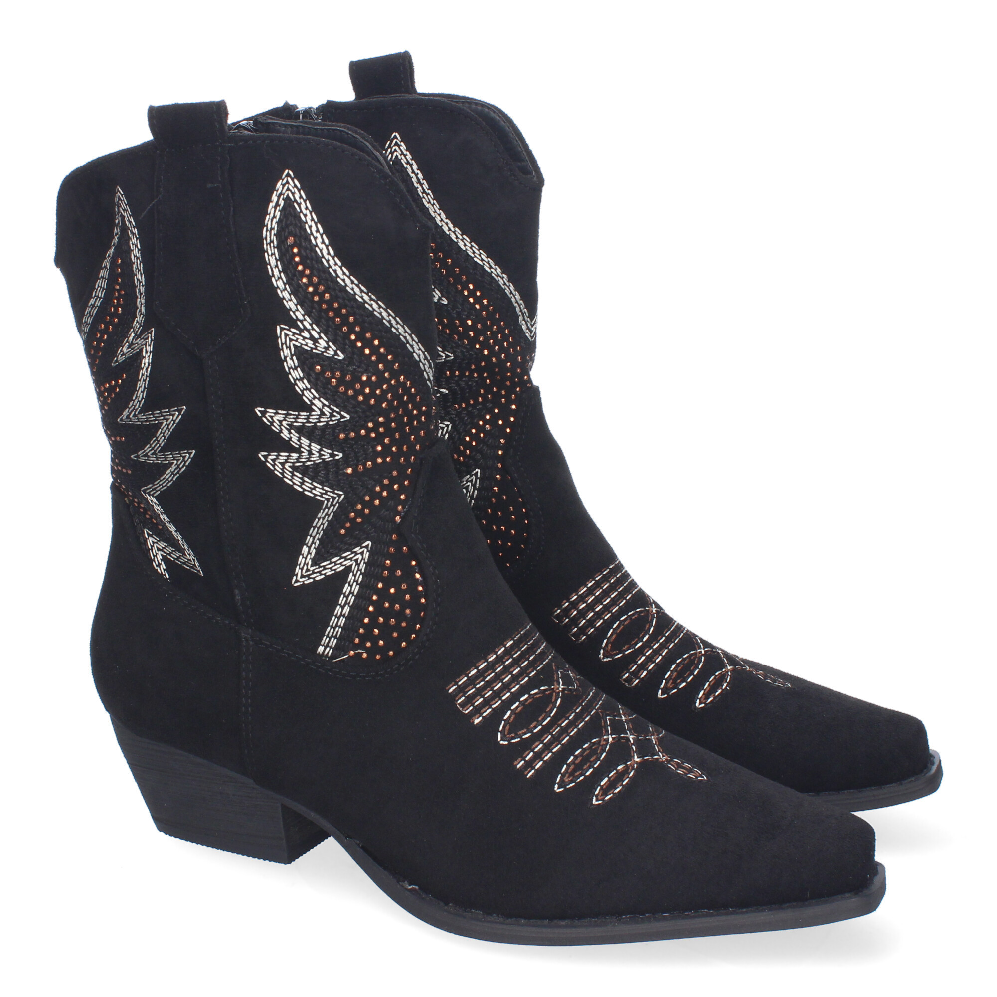 Shoes and Blues Bottines à talons country, design élégant avec broderie A-3317 Noir