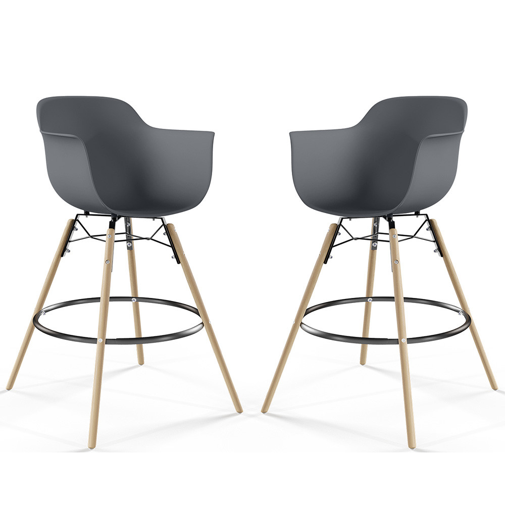 Tabouret de Bar - Design Scandinave - Pieds en Bois - Lot de 2 - Nordika Gris foncé