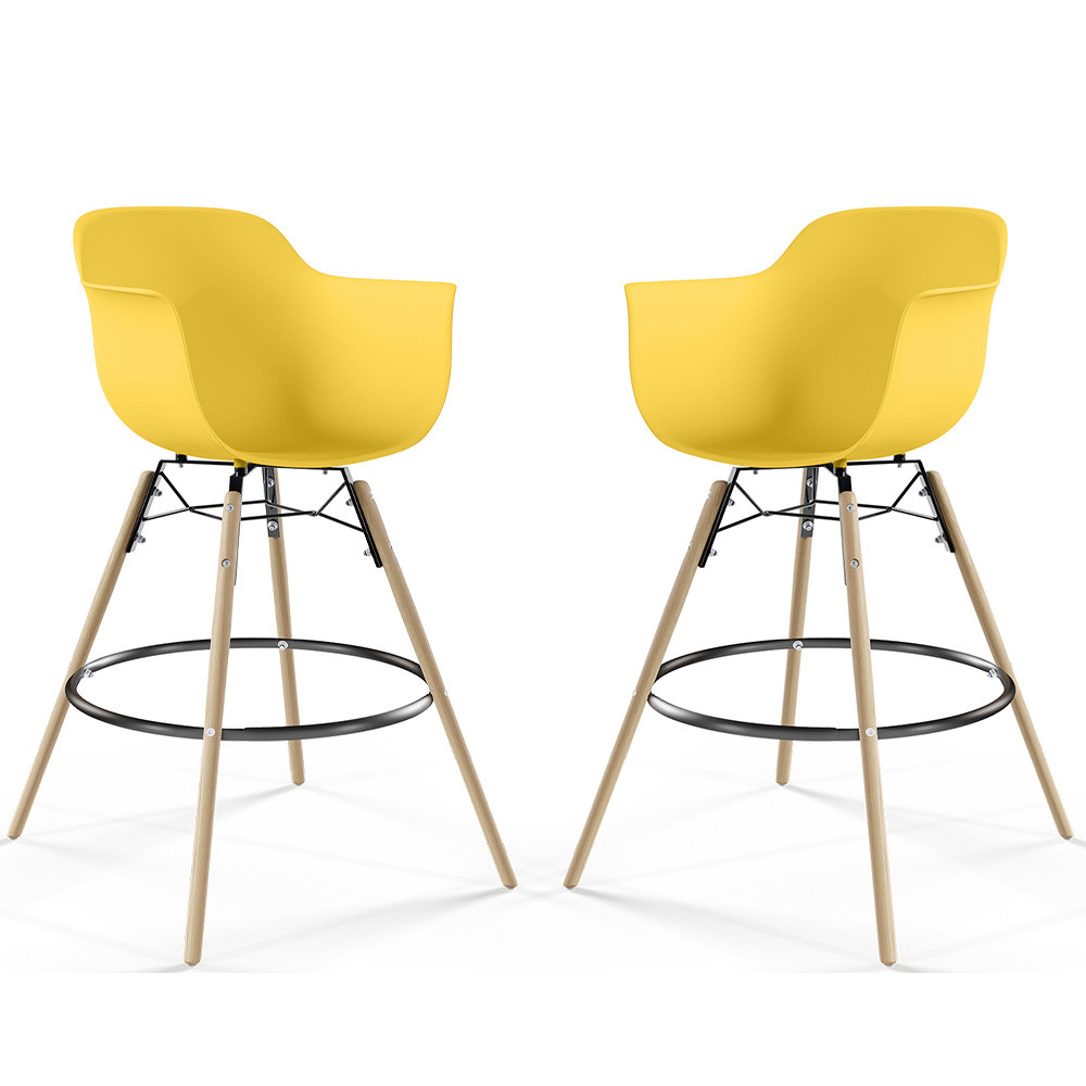 Tabouret de Bar - Design Scandinave - Pieds en Bois - Lot de 2 - Nordika Jaune