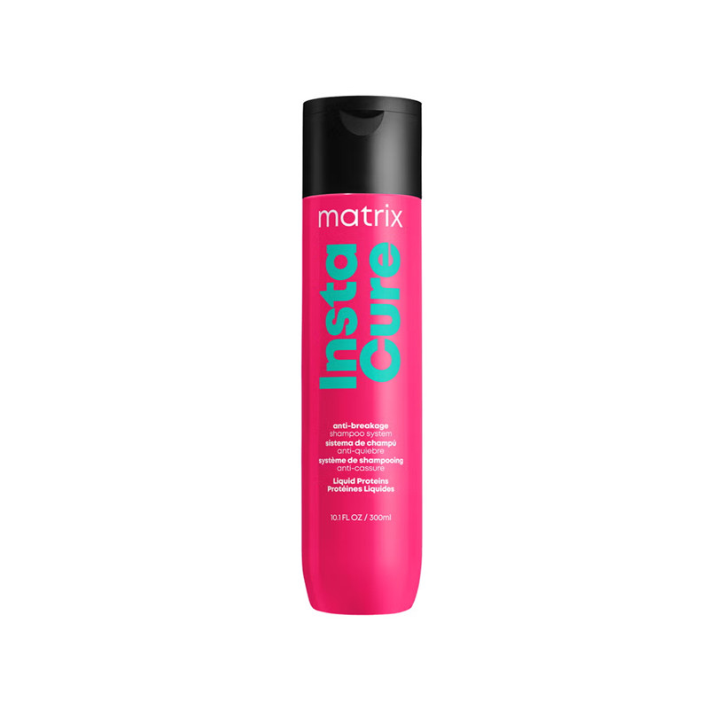 Le shampooing anti-casse Matrix Total Results Instacure, infusé de protéines liquides, aide à réparer la force pour réduire la casse des cheveux secs, cassants et abîmés. Le système anti-casse composé de shampooing, revitalisant et spray remplit les pores, créant une surface uniforme et équilibrée.