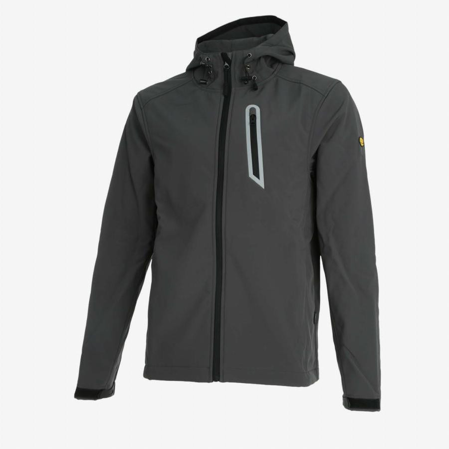 Veste softshell avec 3 poches zippées avant dont une poche de poitrine, détails réfléchissants, capuche réglable. Poignets réglables.