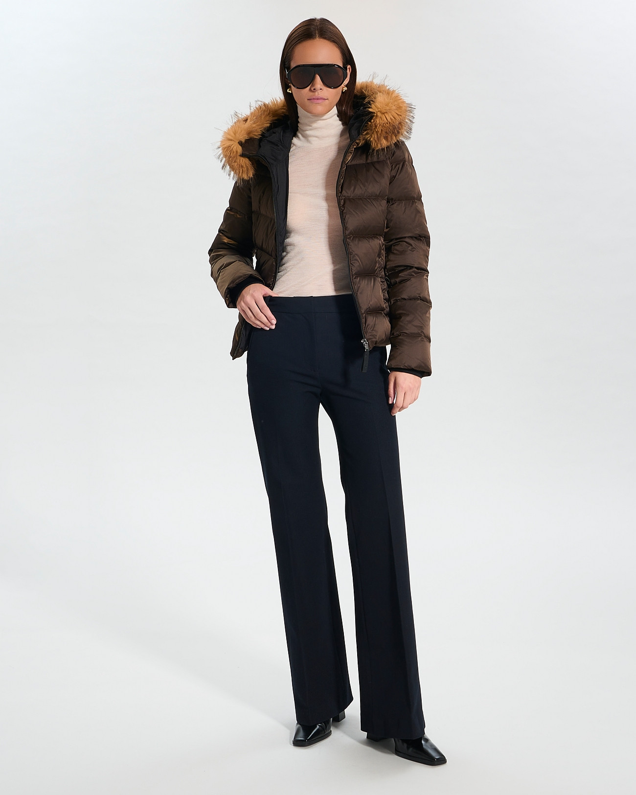 Cette saison, l'iconique de la maison fait son grand retour avec une coupe revisitée. La doudoune DALY allie chaleur et style avec sa capuche en fausse fourrure et son design matelassé. Doudoune courte. Capuche - fausse fourrure amovible Rembourrage en duvet Col montant Fermeture zip Poches raglan Coloris chocolat