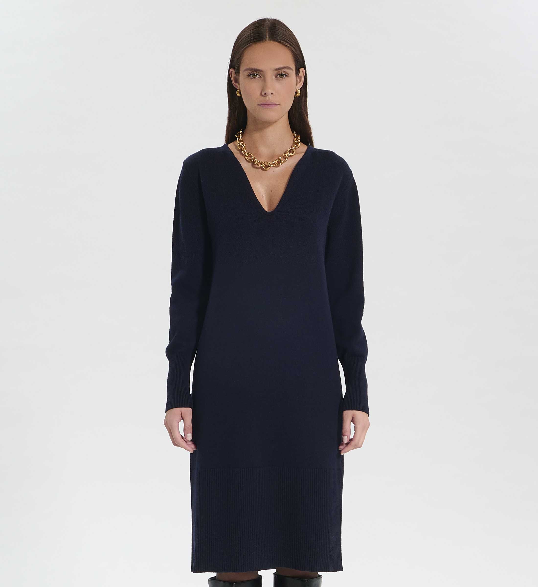 Alliez féminité et chaleur avec la robe RIALTO. Ofrant une maille de qualité, elle deviendra rapidement votre indispensable du dressing hivernal. Robe maille Coupe droite Col V Coloris nocturne