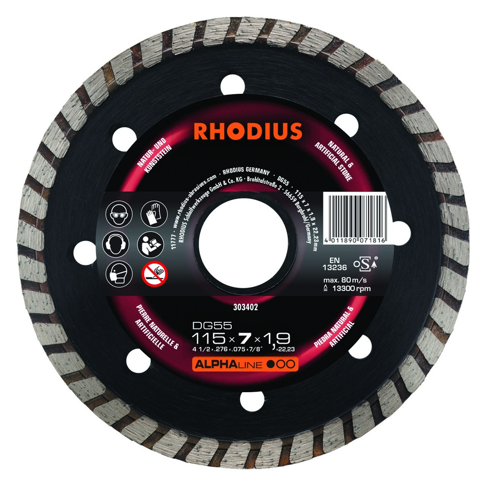 Rhodius Disque de tronçonnage diamant - ALPHALINE - DG55 - 115 X 7,0 X 1,9 X 22,23 mm