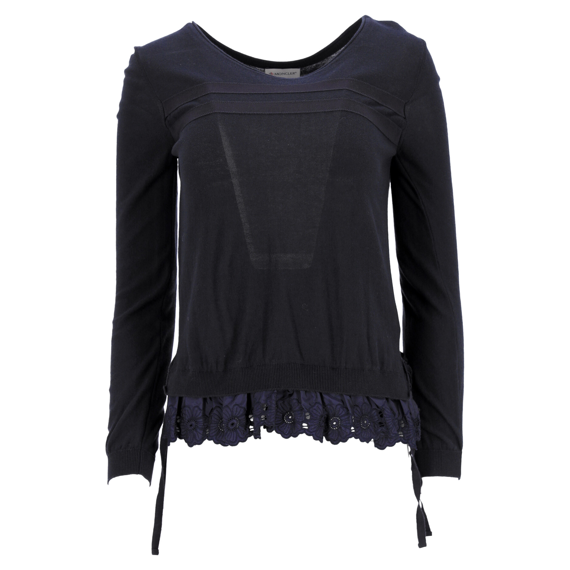 Pull col rond à bordure en dentelle florale Moncler en laine bleu marine