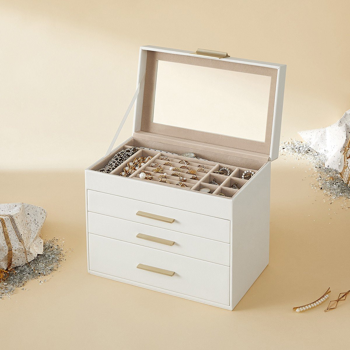 - 3 tiroirs ainsi qu'un compartiment de rangement vitré.