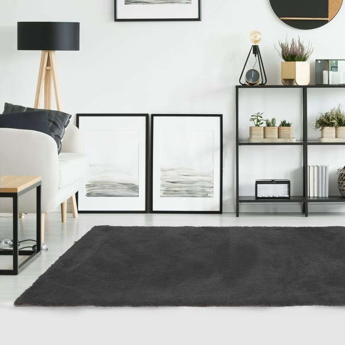 Tapis salon extra-doux toucher laineux gris foncé 120x170