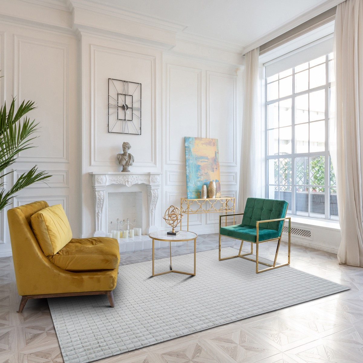 Tapis salon damier extra-doux blanc 160x230