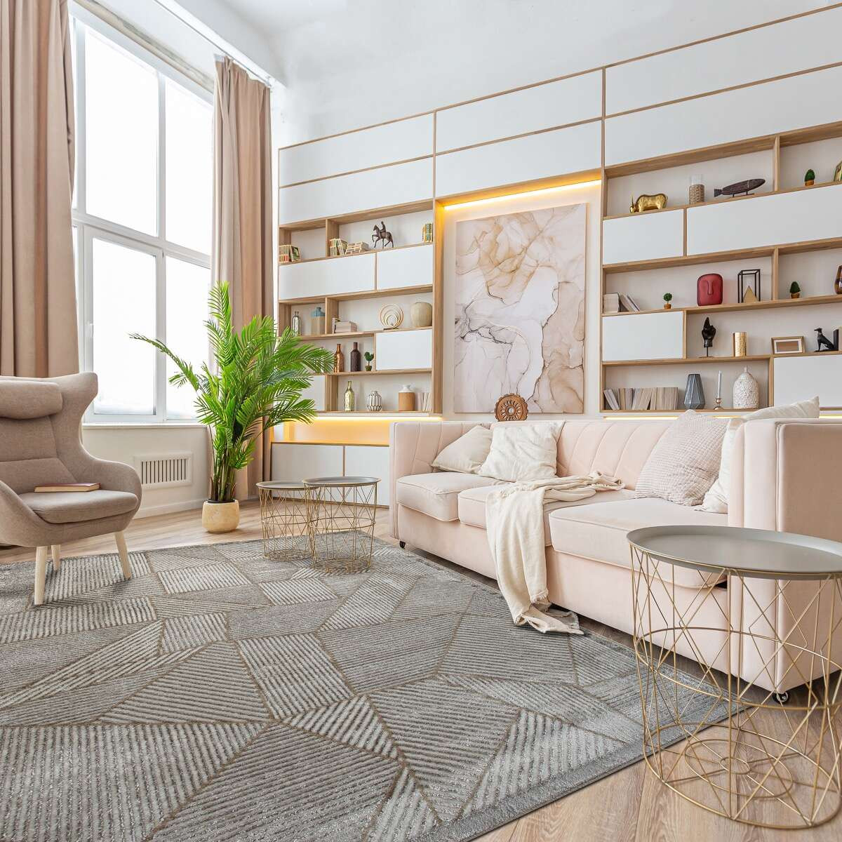 Tapis salon motifs géométriques beige 160x230