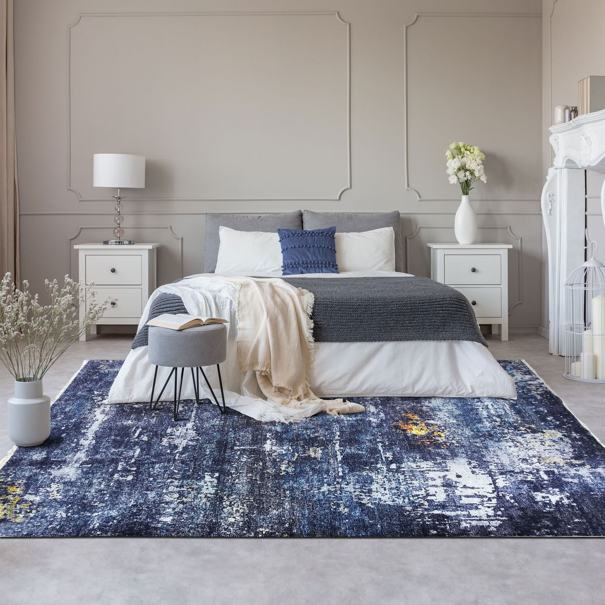 Tapis salon extra-doux motif abstrait bleu foncé 120x170