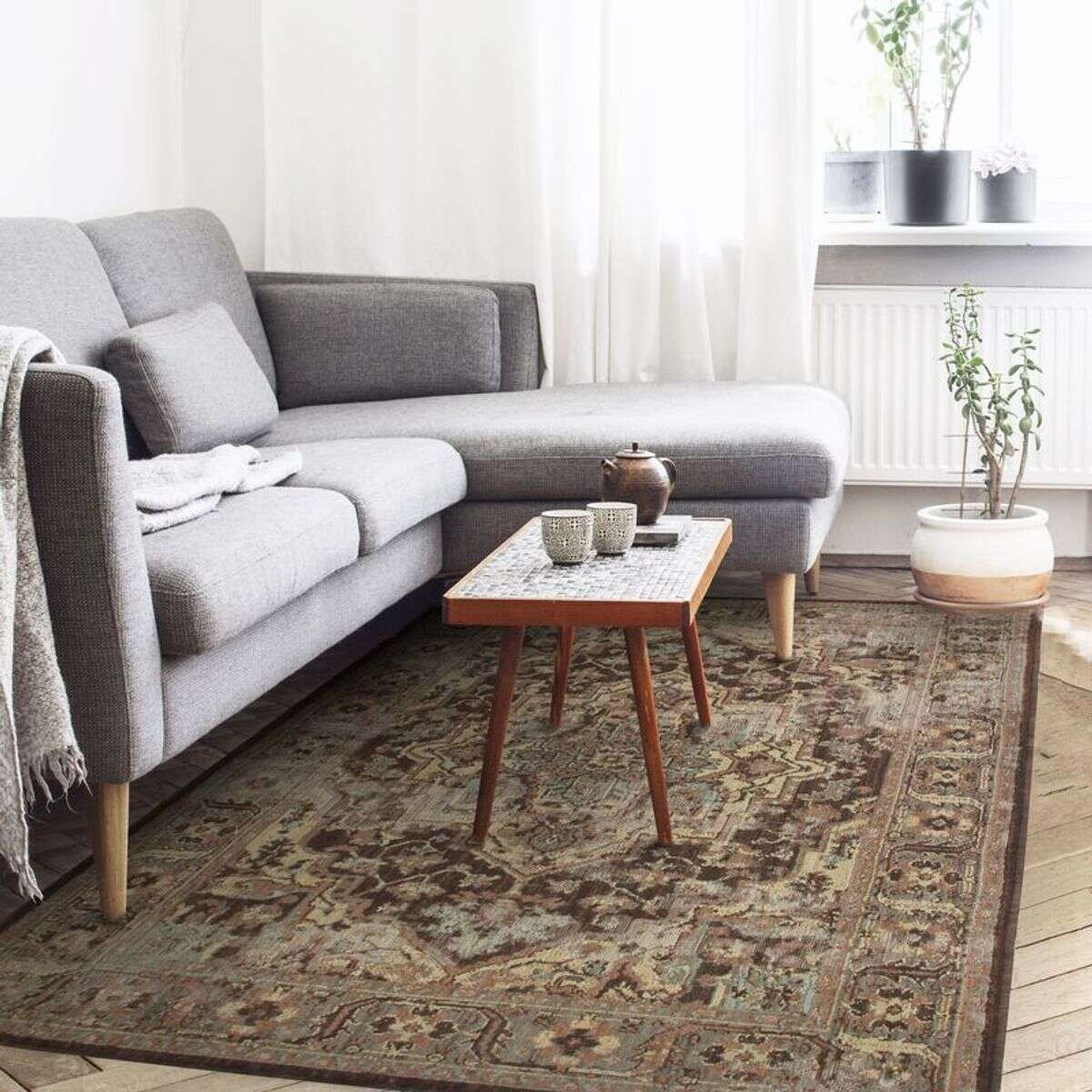 Un superbe tapis à la fibre douce, confectionnée pour créer un effet d'usure naturelle. Il apportera une élégante atmosphère ethnique et vintage à votre intérieur.Composition : 100% PolypropylèneEpaisseur : 10 mmFabrication : à la machineQualité : Entretien tapis facile, aspirateur ou chiffon humideQui sommes-nous ?Nous sommes une PME française spécialisée dans la décoration de la maison depuis plus de 40 ans.Tapis, coussins, rideaux, voilages, plaids et stickers, nous concevons et fabriquons des articles dans notre usine du Loiret et parcourons le monde pour trouver les meilleurs produits, toujours au meilleur prix !Nos articles sont stockés dans nos entrepôts en région Centre Val de Loire sur 10 000 M2.La satisfaction de nos clients est notre priorité, aussi accordons-nous un délai de 60 jours pour retourner son article en cas d'insatisfaction.Soucieux des enjeux sociaux et environnementaux, The Deco Factory privilégie les tapis labellisés GOTS (Global Organic Textile Standard), OEKO-TEX et AZO FREE.- Confectionné avec soin en Polypropylene