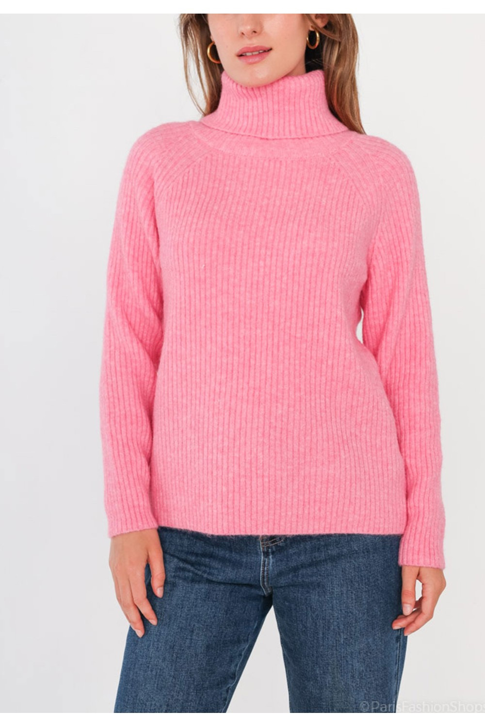 Pull col Roulé - couleur : Rose