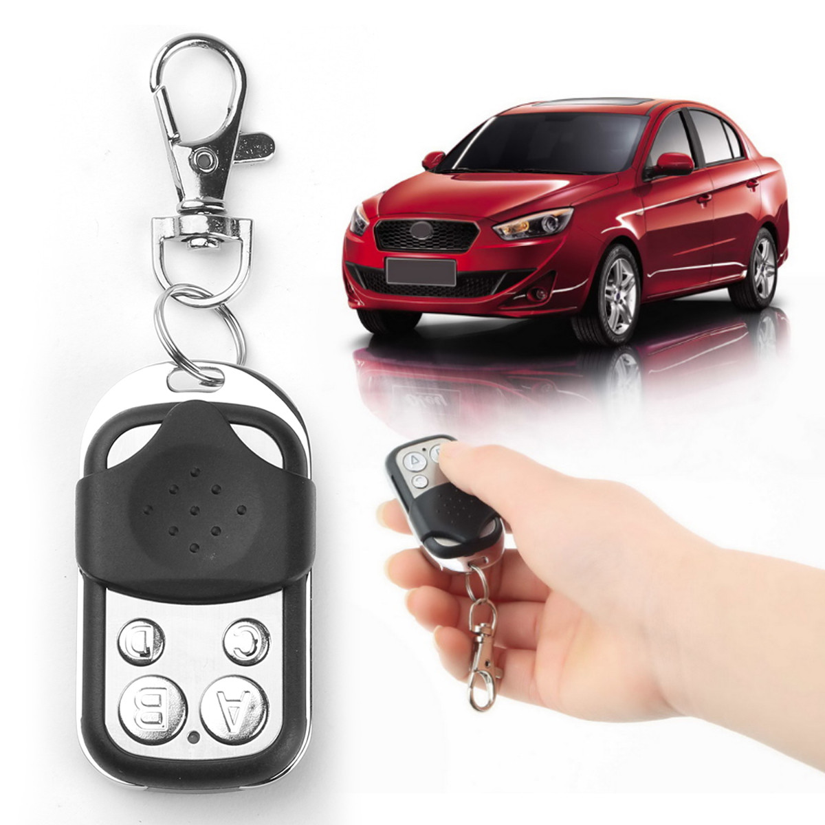 • Télécommande sans fil à quatre boutons avec couvercle métallique • Caractéristique : • Utilisée pour copier et appairer les télécommandes de portes électriques, de portes roulantes, de barrières de portes de garage, de portes rétractables, de portes coulissantes, d'alarmes antivol, de LED, de lampes télécommandées, etc. • Spécifications : • Fréquence : 433 fréquences • Symbole du bouton : ABCD • Inclus dans le pack : • 1x Télécommande • 1x Pile 27A • 1x Notice d’utilisation