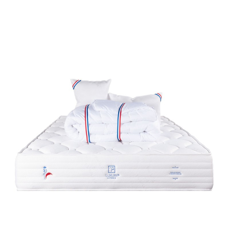 Avec le matelas Patriote, chaque nuit devient une expérience de sommeil luxueuse. Oubliez les nuits agitées et les douleurs matinales. Nous avons souhaité le combiner avec une couette de 450g avec une très bonne régulation thermique.