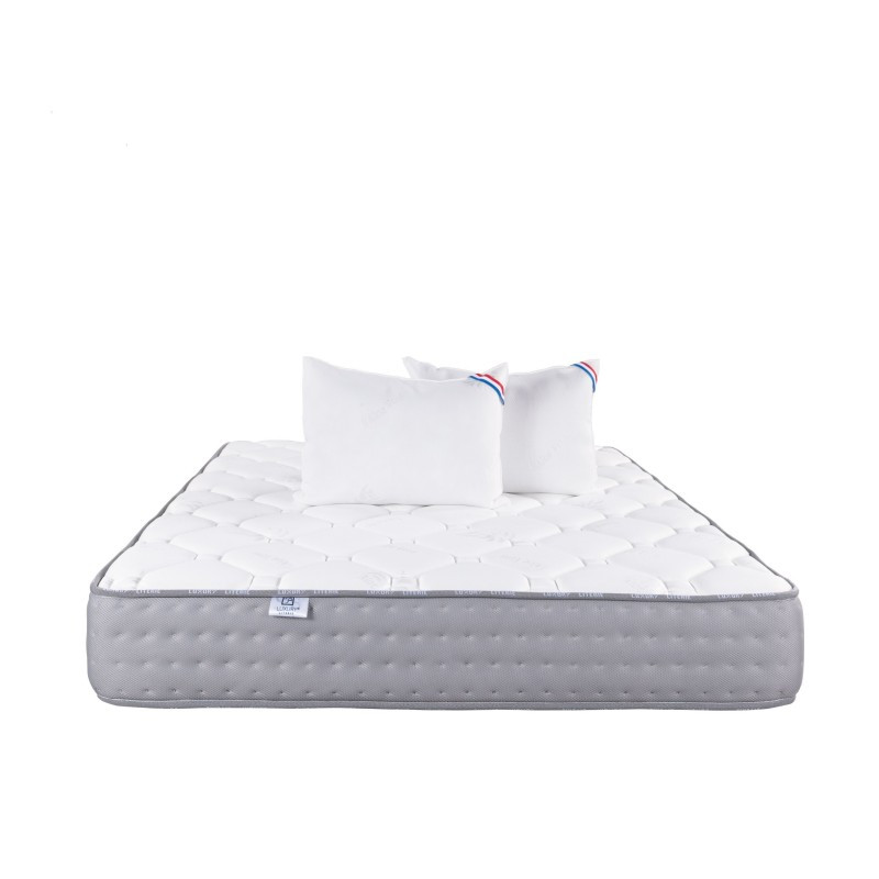 Matelas Zen (20 cm) et Oreiller, mousse haute densité, ferme, face été/hiver, 140x200cm