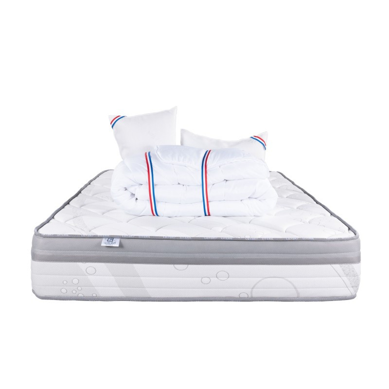 Ensemble matelas <> ferme 7/10, épaisseur 26cm + couette + oreiller