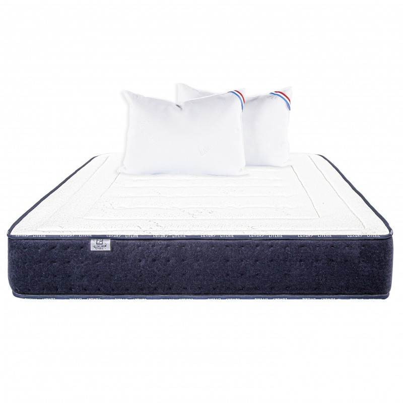 Ensemble matelas <> mi-ferme 5/10, épaisseur 24cm + oreiller Ce matelas mi ferme est une innovation conçue pour offrir un maximum de confort et de soutien. Sa construction unique combine deux mousses de première qualité, Memosoft100 et ErgoaeroFoam100soft, qui ont été développées simultanément pour offrir la combinaison parfaite de confort et de soutien.