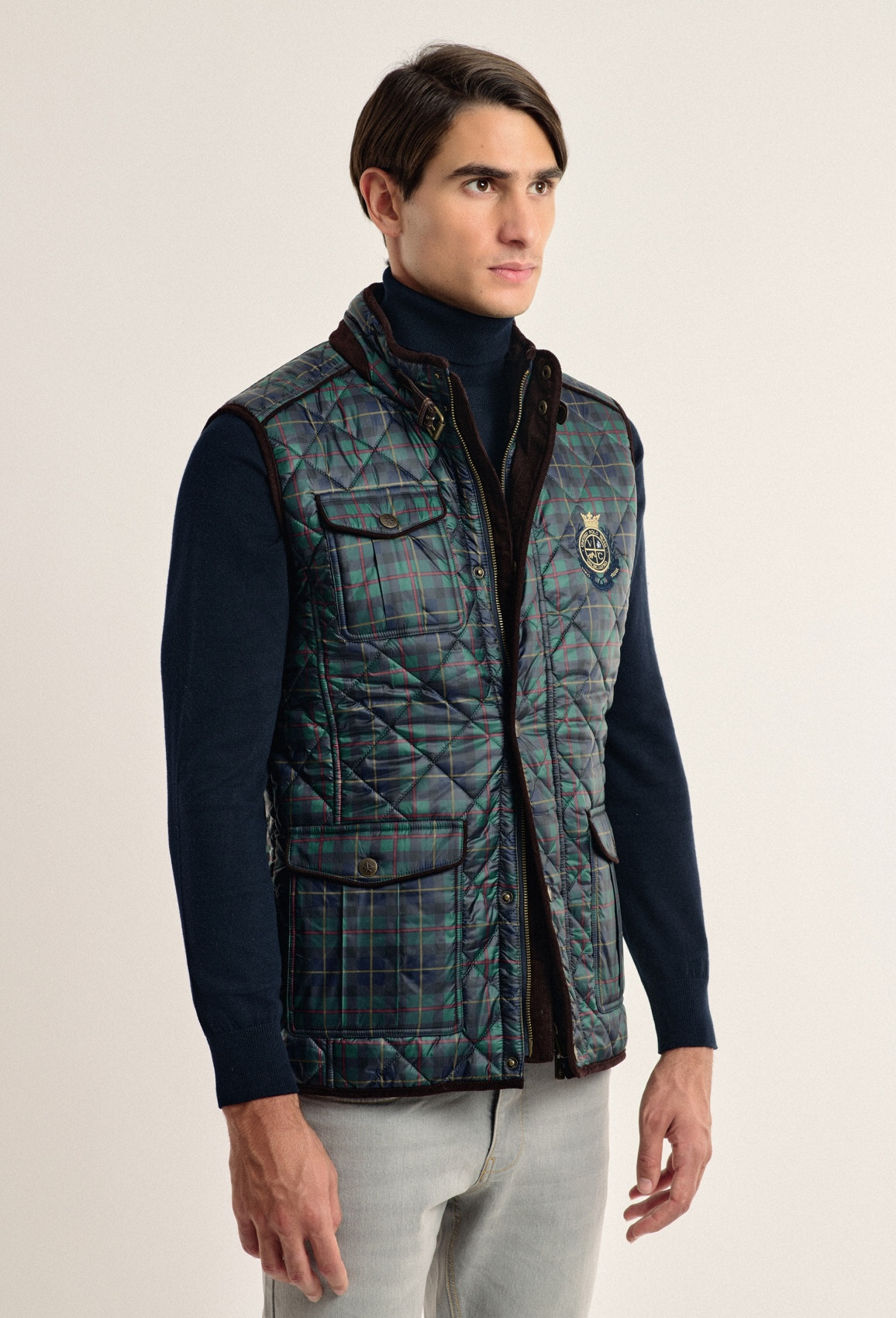 Doudoune sans manches Valecuatro écossaise bleu marine