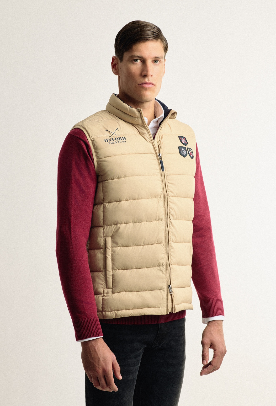 Gilet matelassé à la coupe décontractée, col montant et fermeture à glissière. Deux poches latérales zippées. Insignes en caoutchouc sur la poitrine et le dos.
