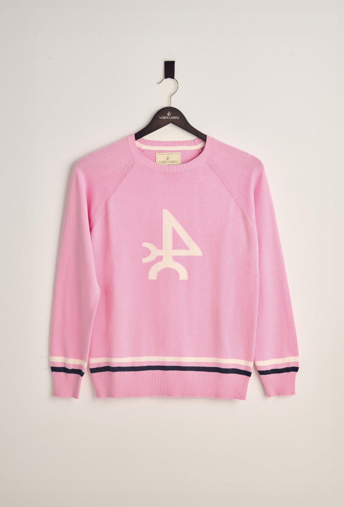 Pull rose en coton avec col rond, finitions côtelées et manches longues. Logo sur la poitrine.