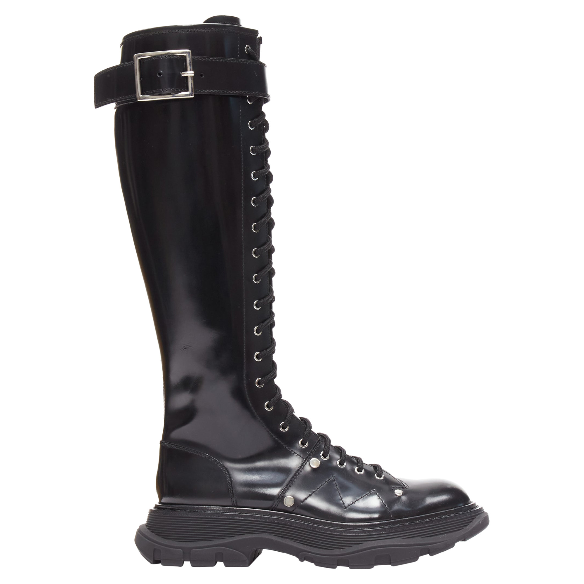 Bottes hautes en cuir à lacets style combat en tricot Tread d'Alexander McQueen