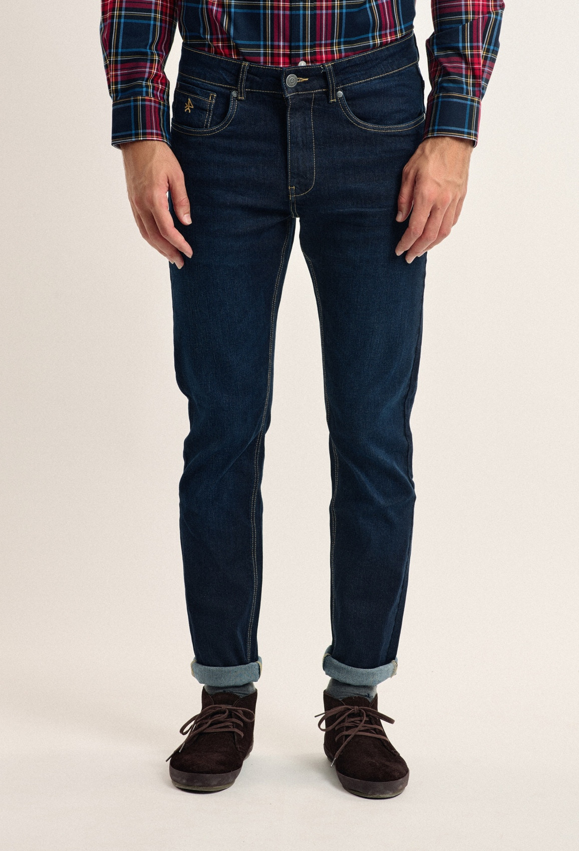 Pantalon de jean en coton avec un faible pourcentage d'élasthanne pour plus de confort. Coupe droite régulière avec cinq poches et effet délavé. Fermeture à glissière sur le devant avec bouton en métal embossé. Logo brodé sur la poche avant.