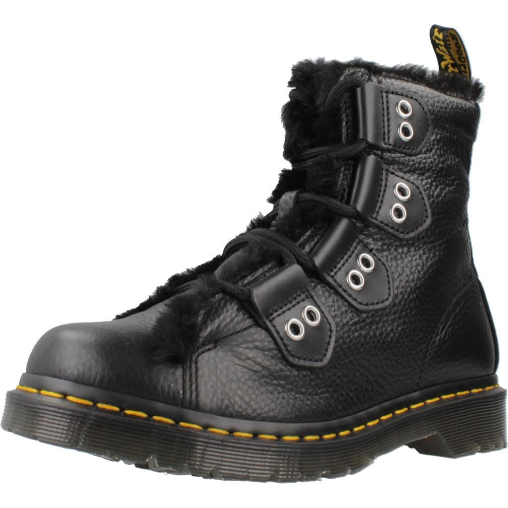 Modèle WANAMA de marque Dr. Martens Noir Doublure Cheveux. Extérieur Peau. Type de construction: Coincé. Fabrique en Vietnam.