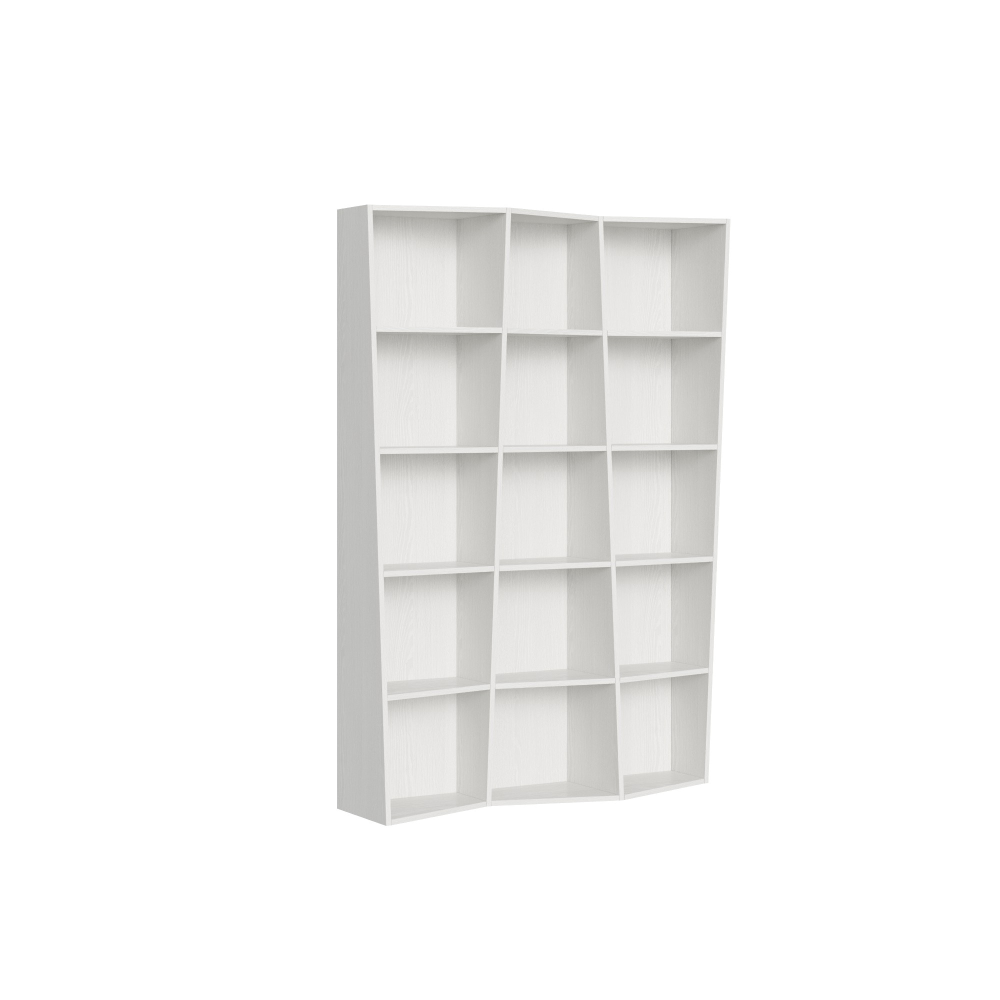 La bibliothèque Trek à 3 éléments est une option moderne et distinctive pour aménager aussi bien des espaces domestiques que professionnels. Caractérisée par un design innovant, la bibliothèque est composée de 3 éléments et 15 compartiments, elle s'intègre parfaitement dans les salons, les bureaux et les studios. Les étagères trapézoïdales et les panneaux verticaux en forme de voile apportent une note d'originalité et d'élégance, sans compromettre l'aspect fonctionnel et pratique indispensable pour ranger livres, objets de décoration et documents. Les étagères sont fixes et non ajustables.