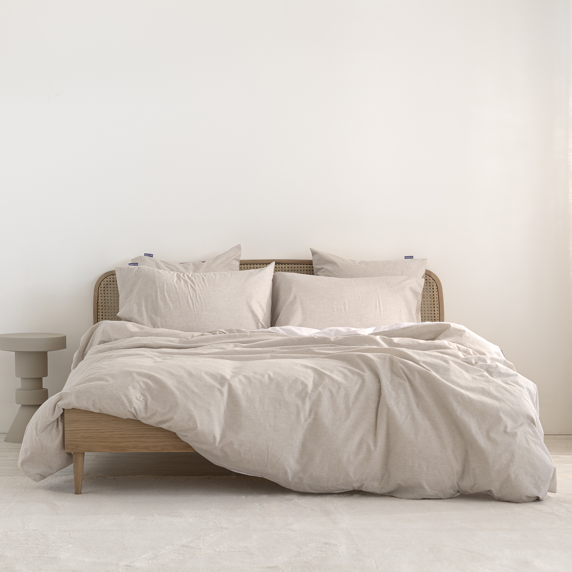 Laissez-vous envelopper par la douceur naturelle de cette housse de couette de Happyfriday. Fabriquée en Espagne avec du coton 100 % et un effet lin, elle offre une texture légère et fraîche pour une chambre confortable. La fermeture cachée par boutons assure un ajustement parfait avec une finition discrète et fonctionnelle. 1 x Housse de couette 140x200 cm (Lit 80/90)