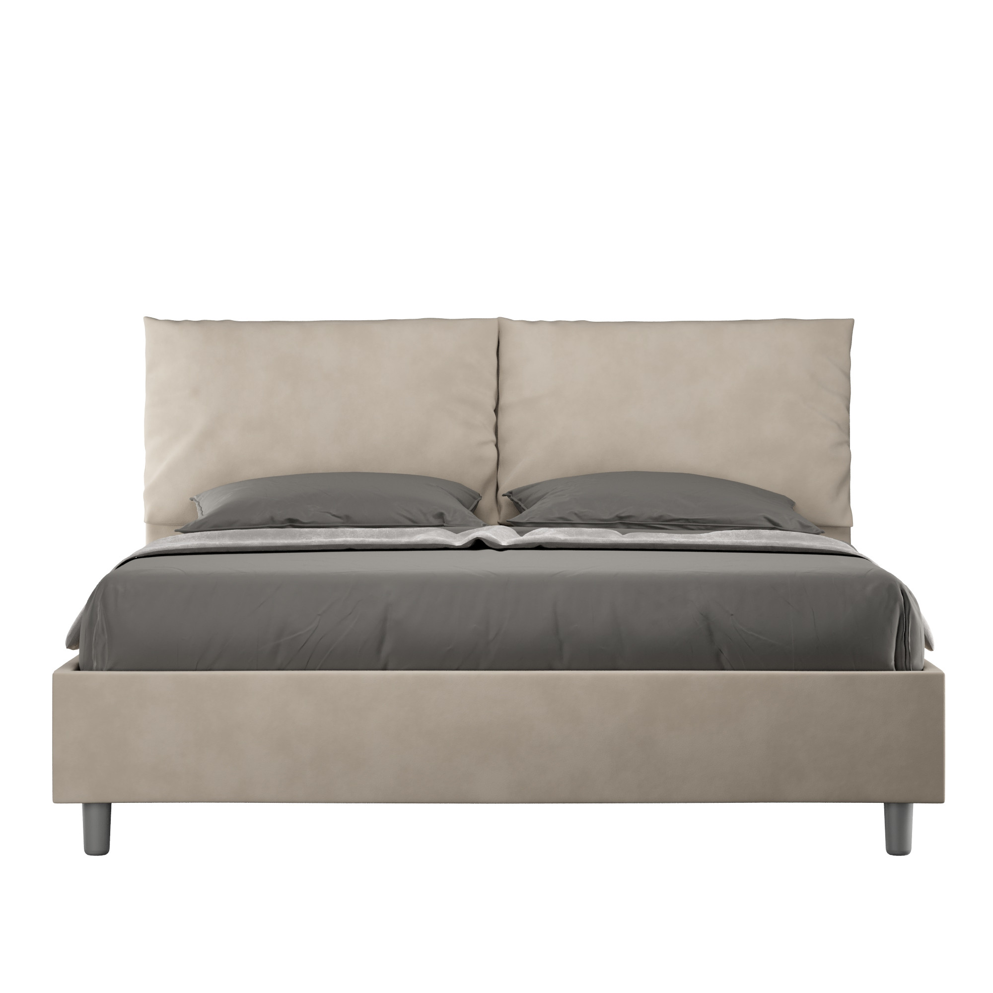 Lit coffre queen size 160x210 Antea avec tête de lit et cadre de lit rembourrés, revêtement en microfibre, particulièrement polyvalent et facile à assortir à tout style de décoration.