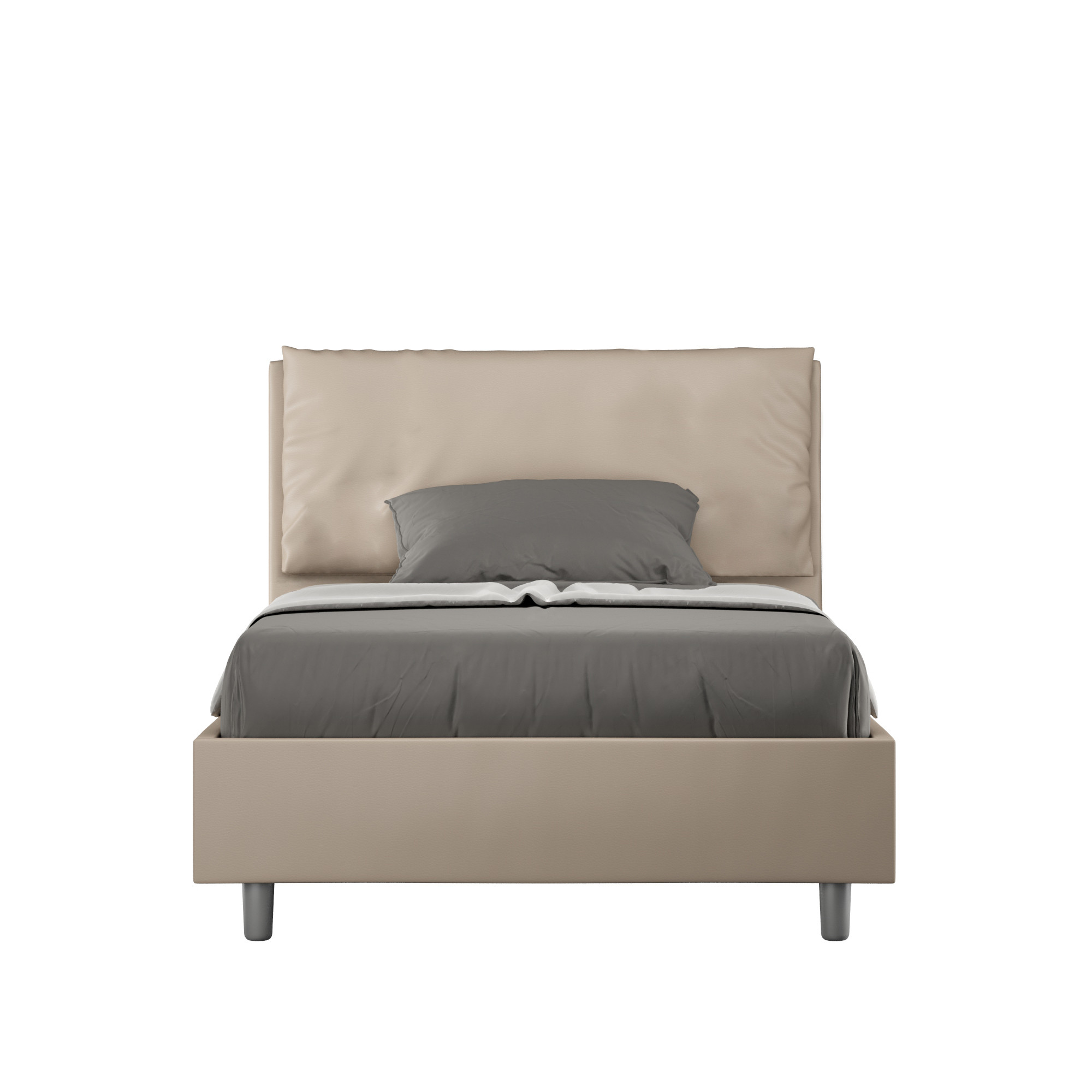 Lit 1 place et demi 120x210 Antea Large avec tête de lit et cadre de lit rembourrés, revêtement en similicuir, particulièrement polyvalent et facile à assortir à tout style de décoration.