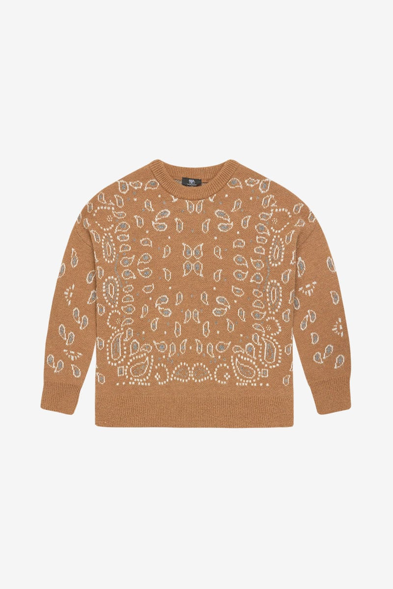 Le Temps des Cerises - Pull Farit camel à motif cachemire