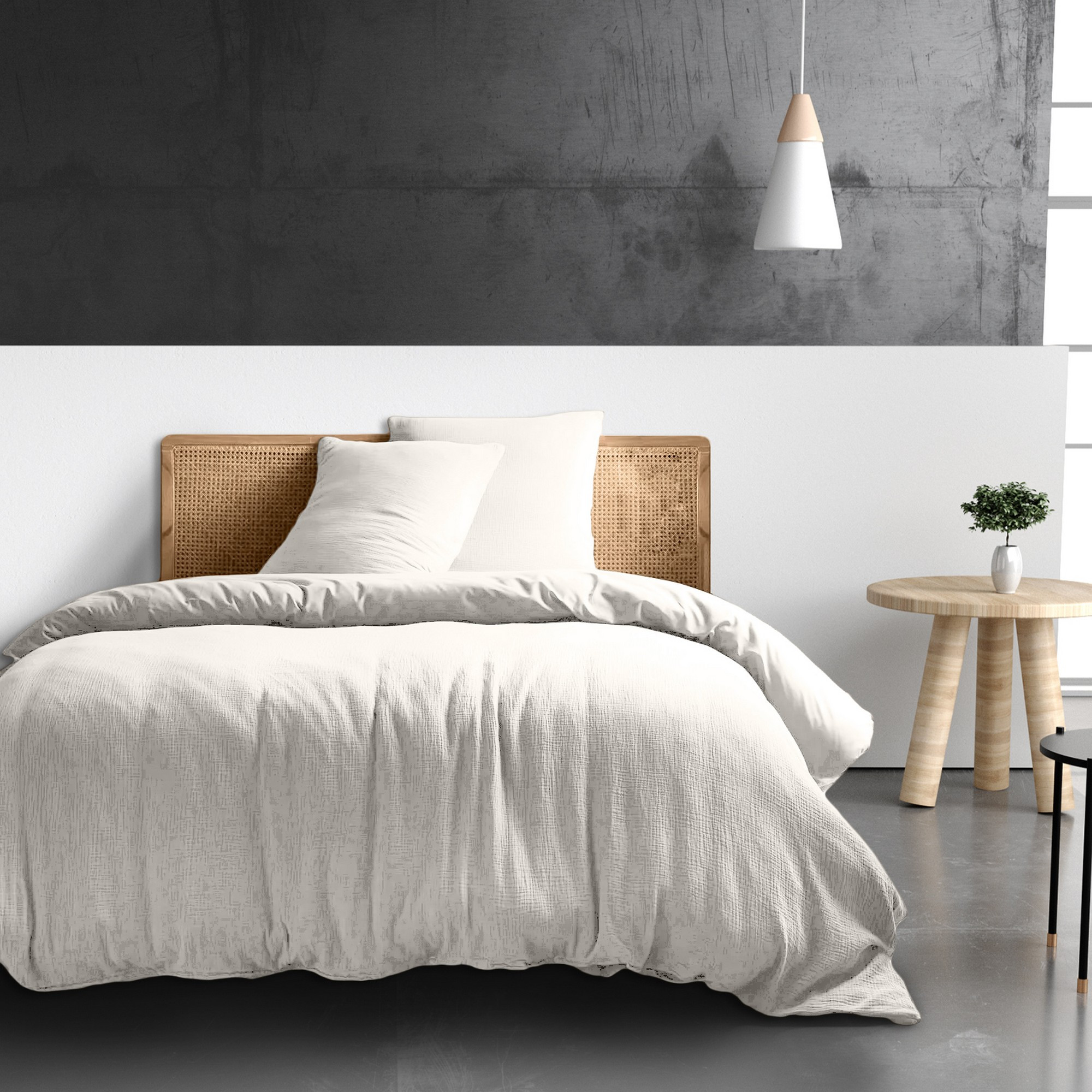Information sur l'offre : HOUSSE DE COUETTE UNI EN 100% GAZE DE COTON matière qui ne pourra que gagner en souplesse et en douceur au fil des lavages. Naturellement froissée et facile à vivre, finie la corvée de repassage pour un lit impeccable, il sera parfait au naturel pour une chambre Dimension : • Housse de couette 240 x 220 cm • Housse de couette 260 x 240 cm Finition : boutons Conseil d'entretien : Faites un prélavage avant utilisation - Respectez les instructions de lavage indiquées sur l'etiquette produit - Lavez toujours votre linge sur l'envers - Préférez les cycles 40°C avec un essorage modéré - Un séchage à l'air libre réduira fortement l'usure du linge - Repassage deconseillé. Certification : Oeko-Tex®