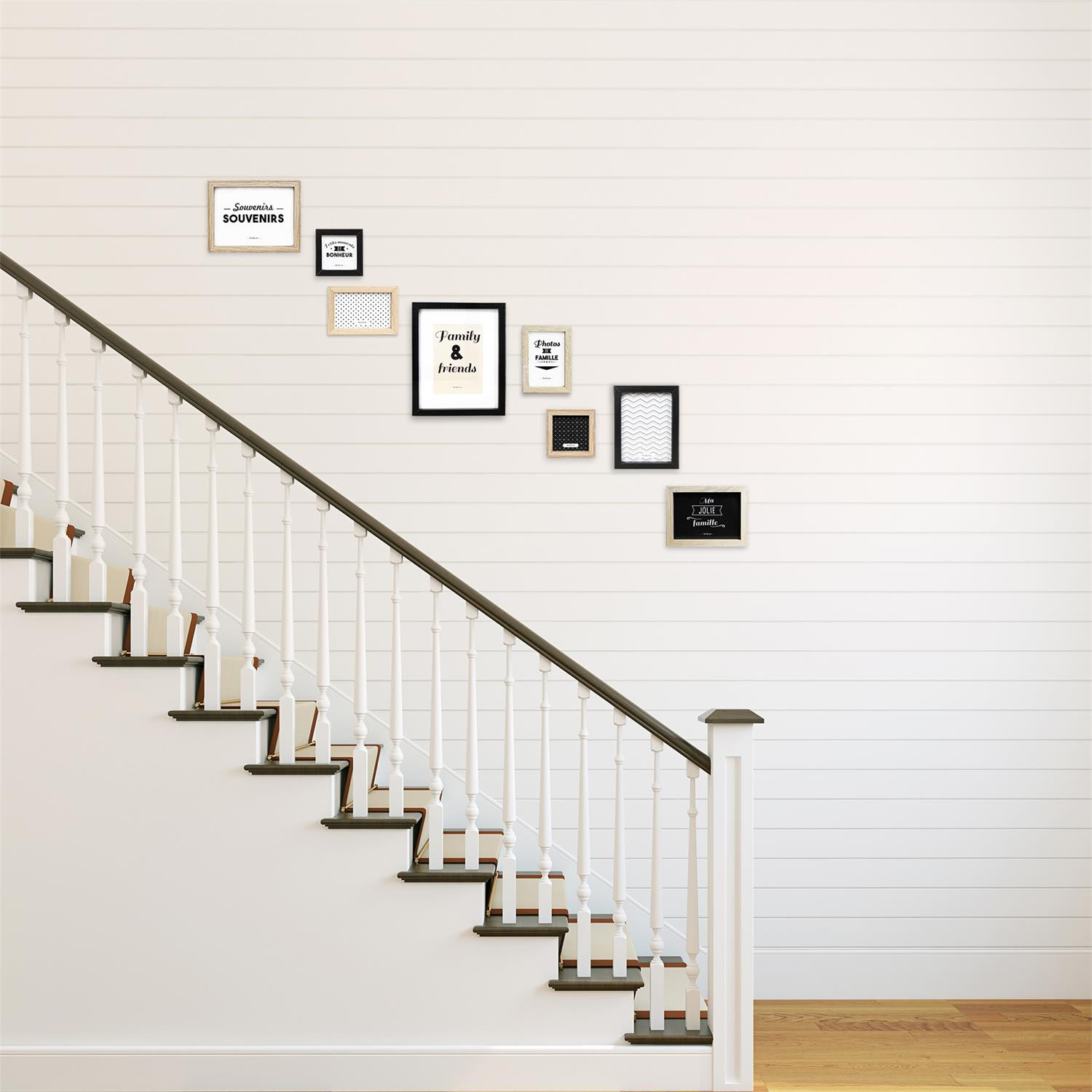 Composez votre propre décoration murale avec ce lot de 8 cadres photos en bois. Vous pourrez y glisser les moments de complicité de la famille ou des images inspirantes ! A offrir ou pour soi, succès garanti ! Composez un montage qui vous ressemble en personnalisant votre mur !