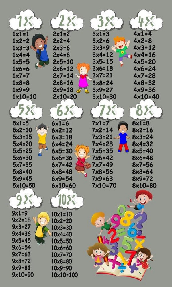 Tapis chambre enfant 120x180 cm Polyester Multiplication Gris