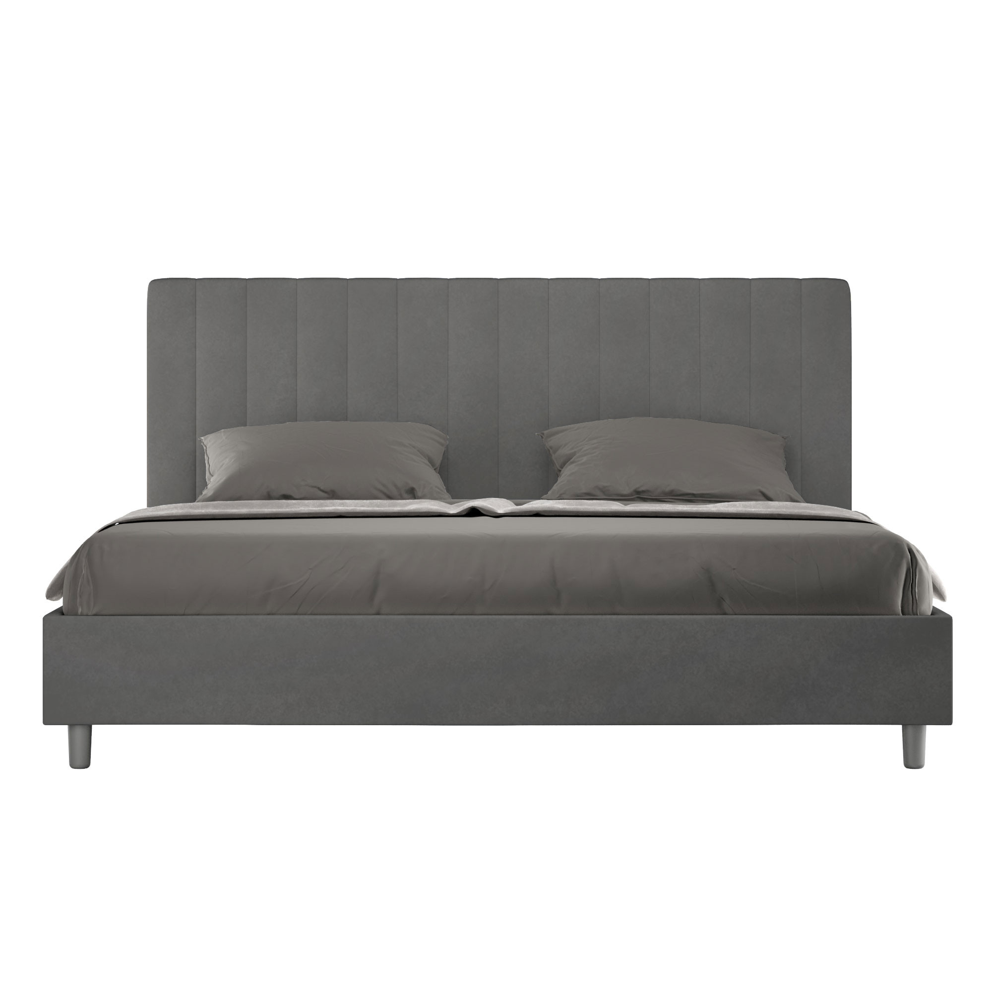 Lit king size 200x210 Agueda avec tête de lit et cadre de lit rembourrés, revêtement en microfibre, particulièrement polyvalent et facile à assortir à tout style de décoration.