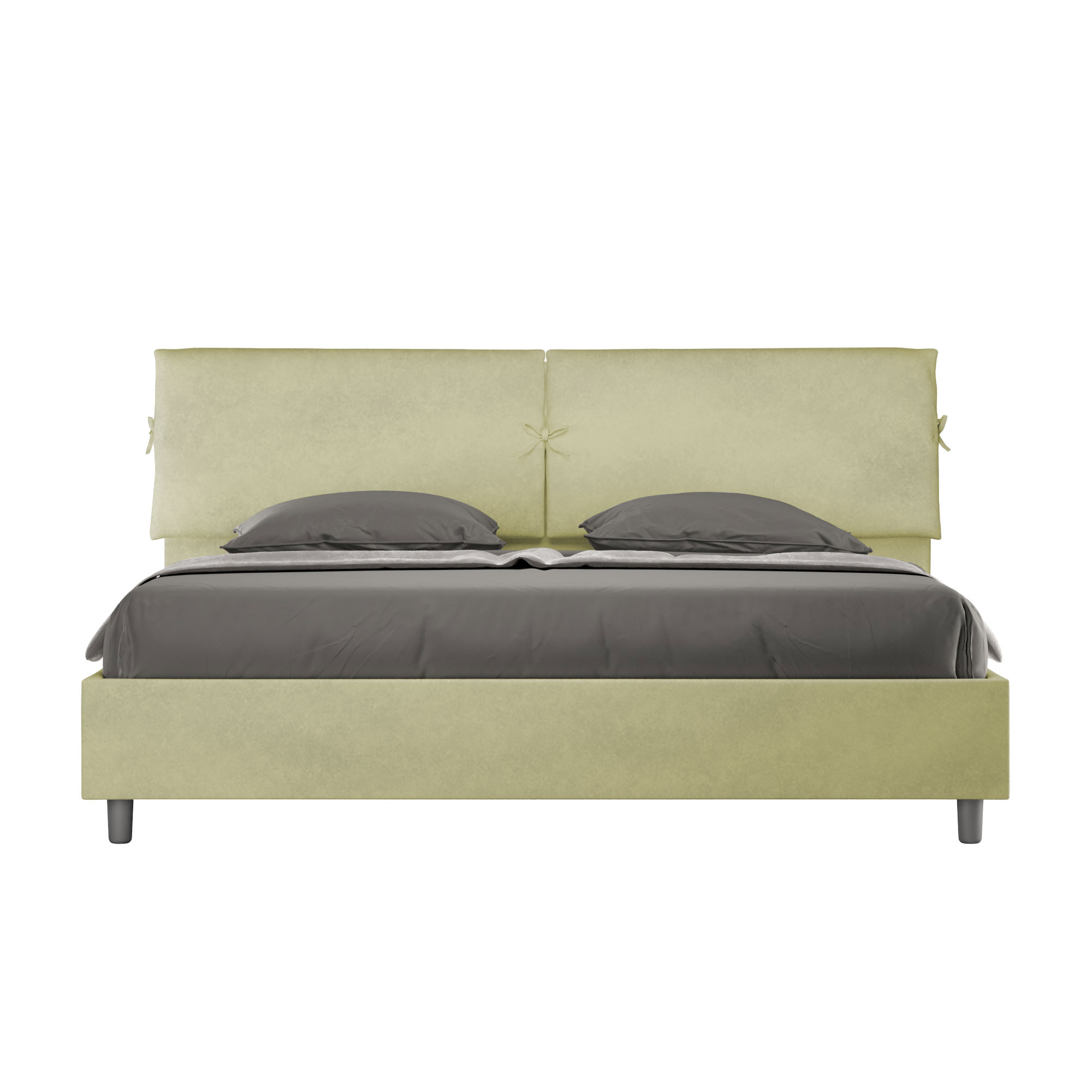 Le lit 180x190Mados est caractérisé par un style élégant et raffiné grâce aux grands coussins présents sur la tête de lit, il est entièrement revêtu en microfibre.